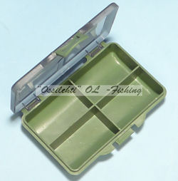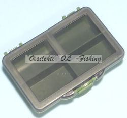 Tuote 107899. Pientarvikerasia 4 -osainen, pilkeille, koukuille, painoille, leikareille jne ... Koko n. 66 mm x 106 mm x 25 mm. Lokerot 29 mm x 48 mm. Paino 41 g.